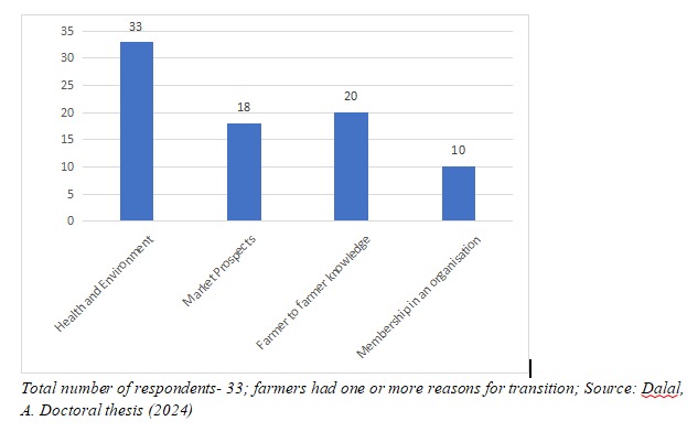 Overall, the research argued that although diverse farming practices were adopted to transition to alternative agriculture, their pathways to transition differ in terms of the strategies adopted and the socio-ecological outcomes they generate for different groups of farmers. Studying these models by recognising different pathways to transition is important in developing an alternative framework to understand sustainable transitions that acknowledge place-based differences and knowledge of farming practices that are crucial at a given time and may be suitable in the current socio-economic context in India.